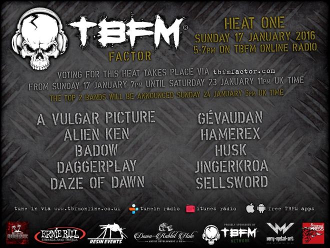 We’re pleased to confirm that out of 408 bands that applied from around the world, Hamerex have made it in to the top 100 and are in the first Heat of the biannual TBFM Factor 2016.