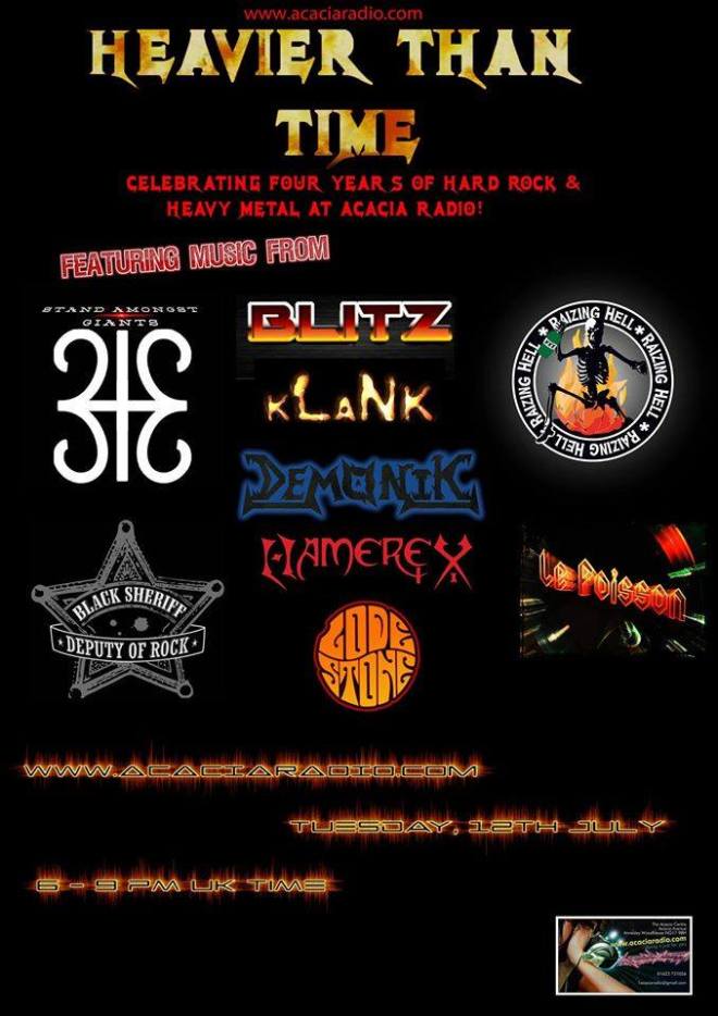 We’re delighted to be included on the Heavier Than Time’s 4 year celebration show over at www.acaciaradio.com tonight, which hits the airwaves from 6pm-9pm UK Time.
