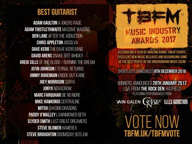 However, it’s not over yet. To get to the next stage is another vote, so if you wish to vote for me to get on to the shortlist for the Best Guitarist award, you can vote now, up until the 30th November over at http://www.tbfm.uk/tbfmvote, with shortlist nominations to be announced on the 8th December.